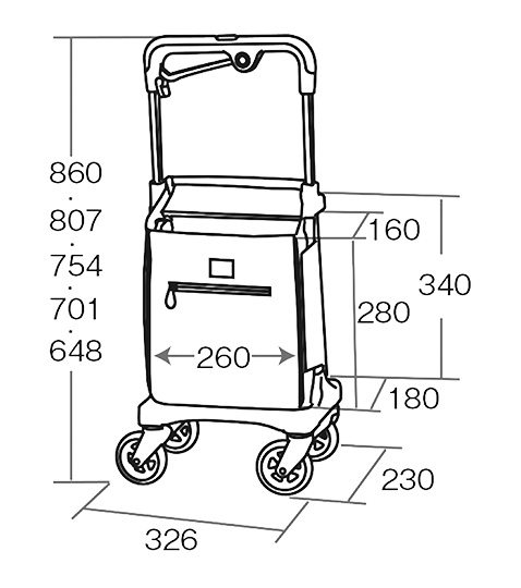 - 外形寸法 :幅230×奥行326×高さ648~860㎜(5段階調節)